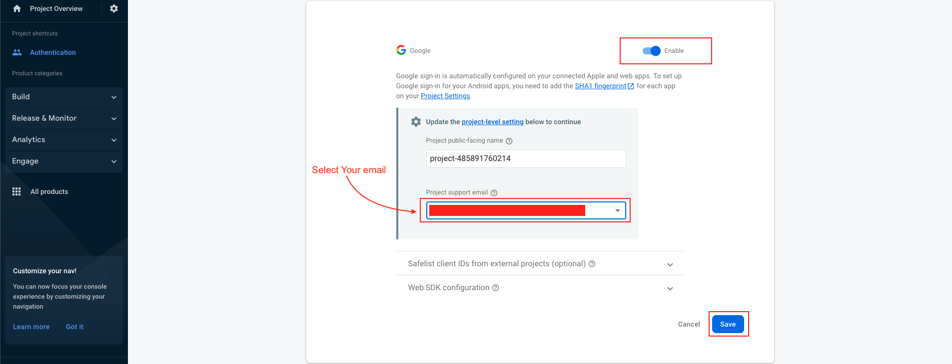 - If you have multiple projects, select the Firebase project for which you need the private key.