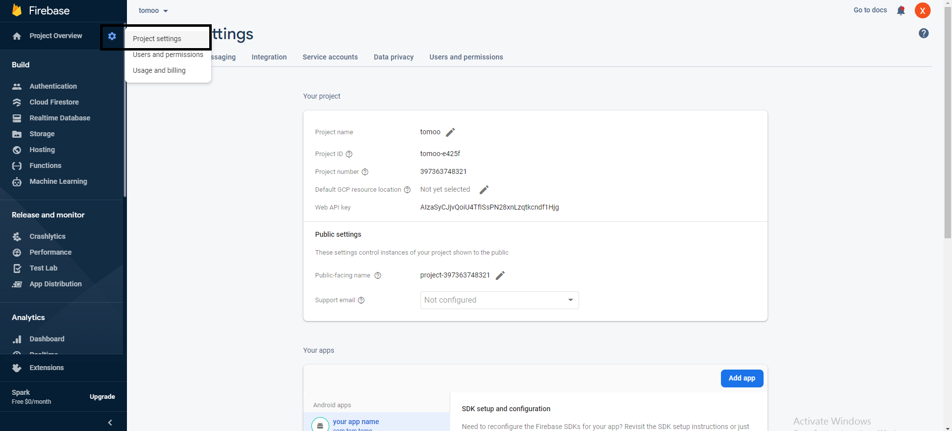 - Please navigate to your Firebase project, which you may have created while following the backend documentation. If you haven't created one yet, please follow the steps below to set up a project: