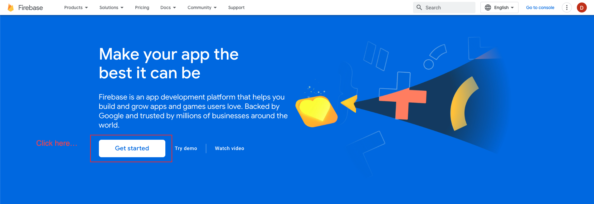 - Begin by visiting the Firebase website through the following link: https://firebase.google.com/