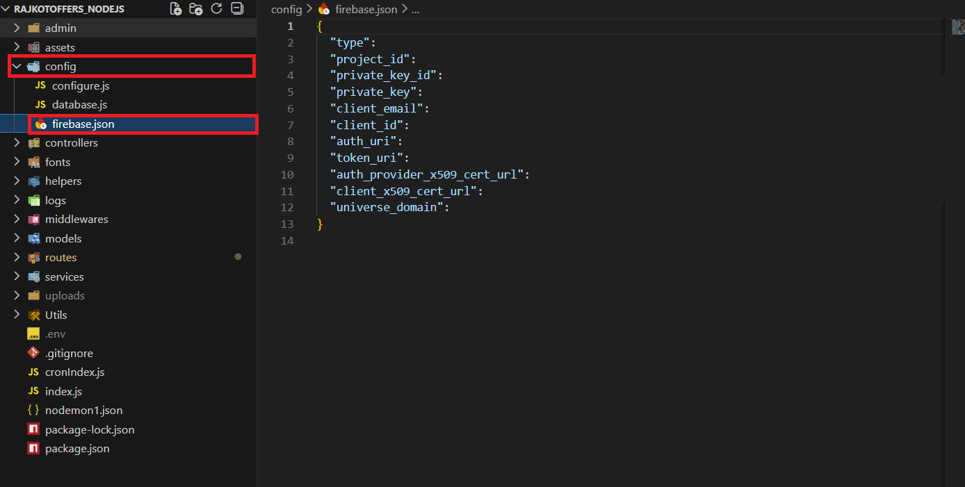 - Please update the downloaded private key file in the 'config' folder of the code and rename it to firebase.json.